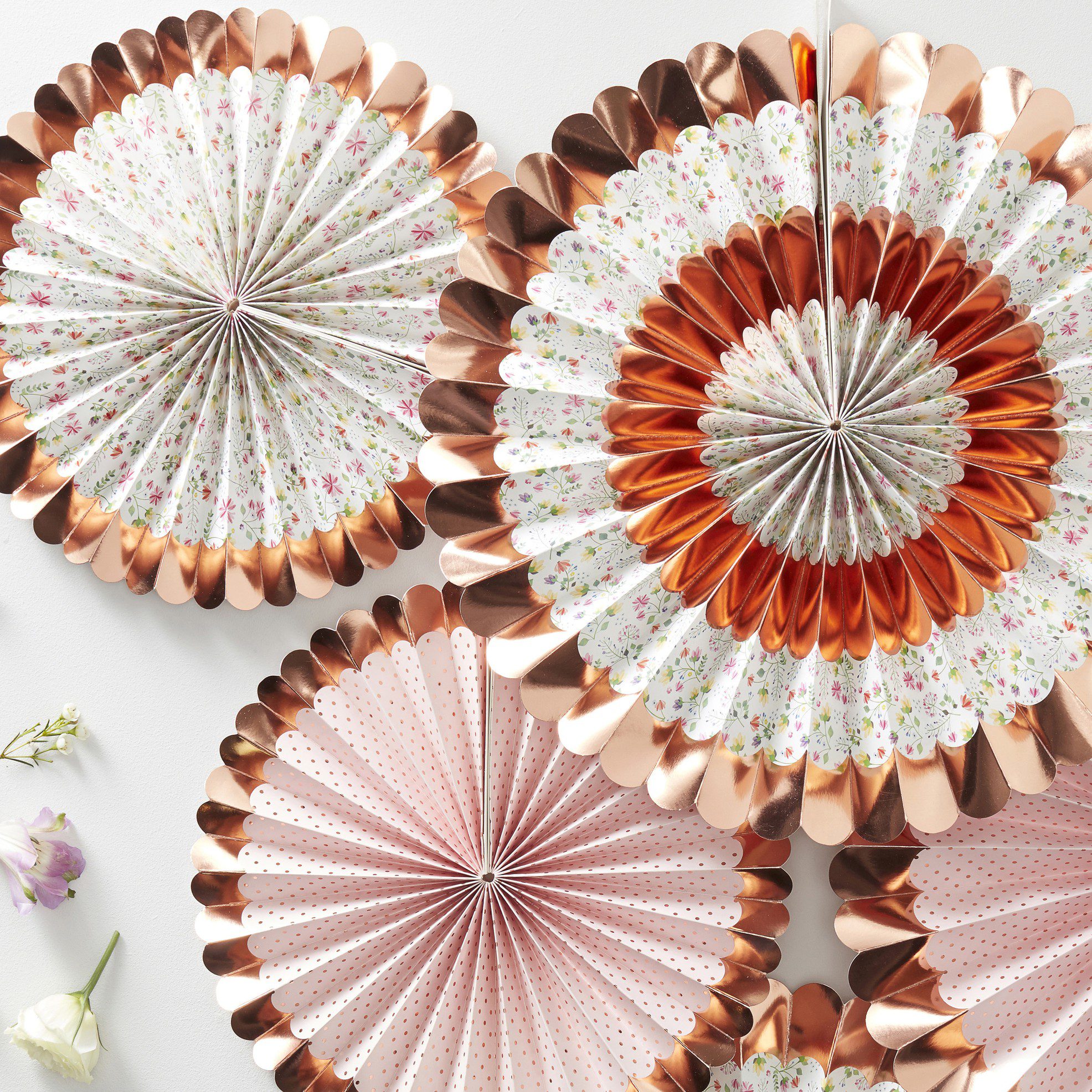 Papirnate pahljače bodo kot dekoracija zagotovo tema pogovora na vaši zabavi in bodo ustvarile popolno vzdušje za vaše goste. Z rožnato zlatimi poudarki na vsakem dizajnu pahljače se bo dekoracija lesketala po vašem prizorišču. Izberite še druge dodatke iz kolekcije Ditsy Floral in ustvarite popolno celoto!
