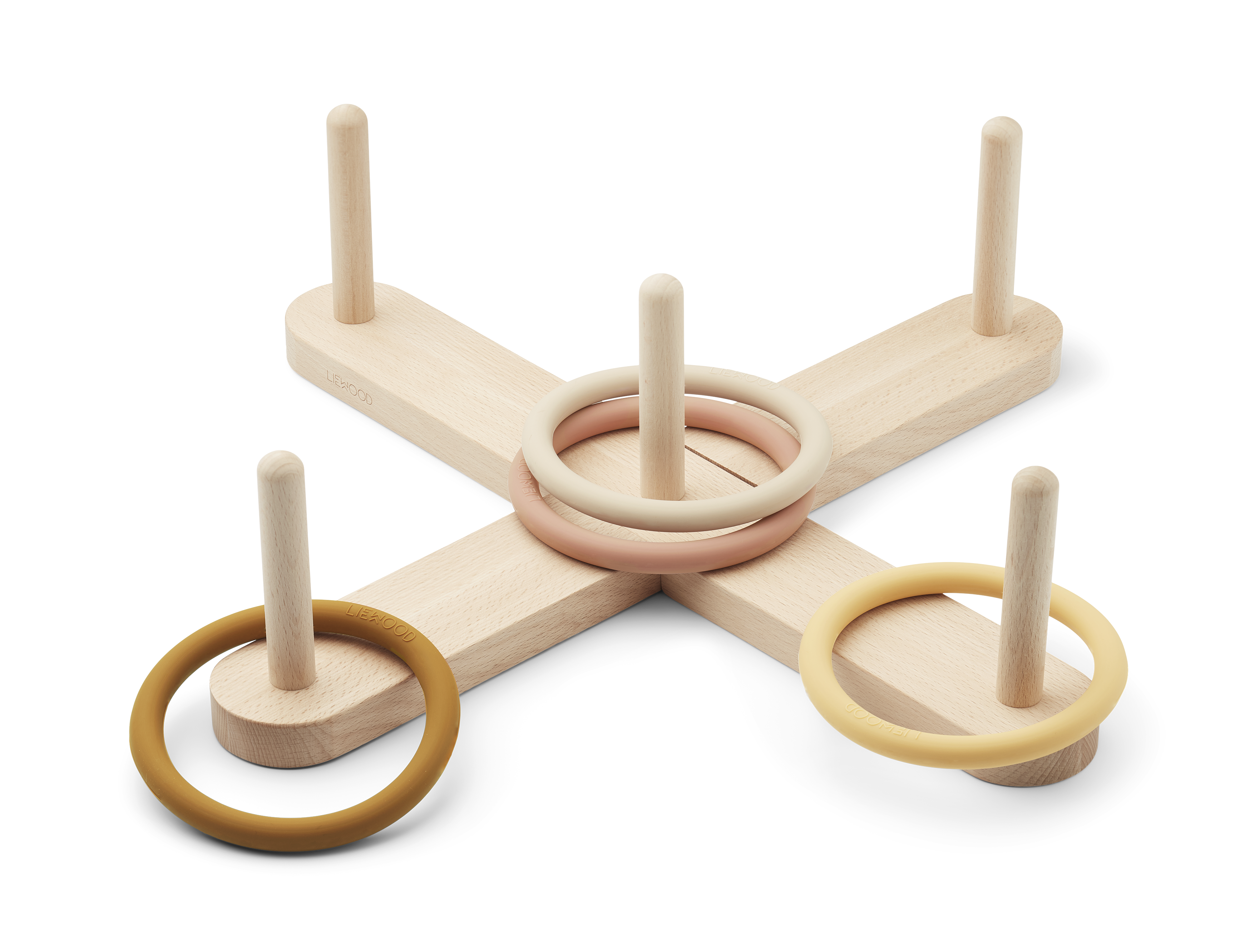 Igro Ivan sestavljajo 4 silikonski obroči in lesen križec s 5 palicami. Določite razdaljo za met iz katere se z obroči cilja palčke na križu in igra se lahko prične! Za dodatno popestritev in otežitev igre lahko palčkam določite različno število točk, kar zahteva še večjo natančnost pri metu. Izdelek ima oznako CE.