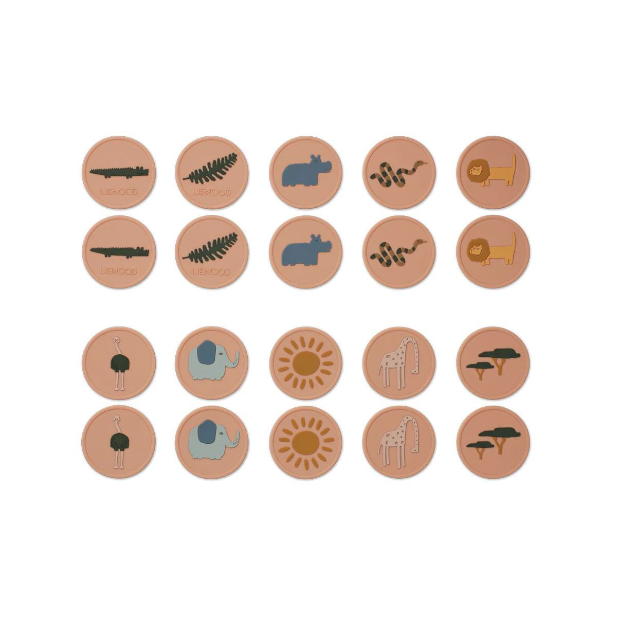 Med tem, ko bodo vaši malčki zaposleni z iskanjem para določenega motiva, bodo krepiti tudi spomin, koncentracijo in način razmišljanja. Ta priljubljena družabna igra obljublja neskončno mero zabave. 20-delni komplet vsebuje silikonske ploščice praktičnih dimenzij 5 x 5 x 0,4 cm, ki se jih majhne dlani zlahka oprimejo.