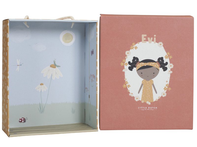 Evi je slatka lutka koja može i sjediti. Mališanu je uvijek na raspolaganju za igru, ali i za maženje. Evi je odličan poklon za buduću mamu, mališana za rođendan ili bilo koju drugu priliku.